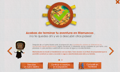 Este serious games comienza con un dibujo de nuestro mundo en que te da la opción de elegir que país deseas comenzar a ayudar y qué personaje deseas seguir.